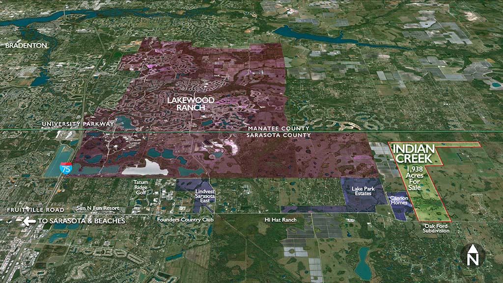 Nearly 1,940 acres of land in Sarasota County has been introduced to the market. Located east of I-75 on Fruitville Road, this untouched expanse of vacant land is perfectly poised to connect with the growth of Lakewood Ranch and Sarasota.