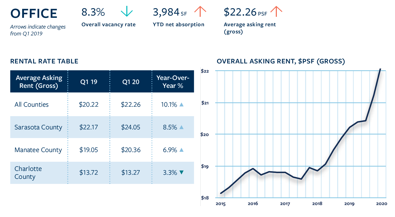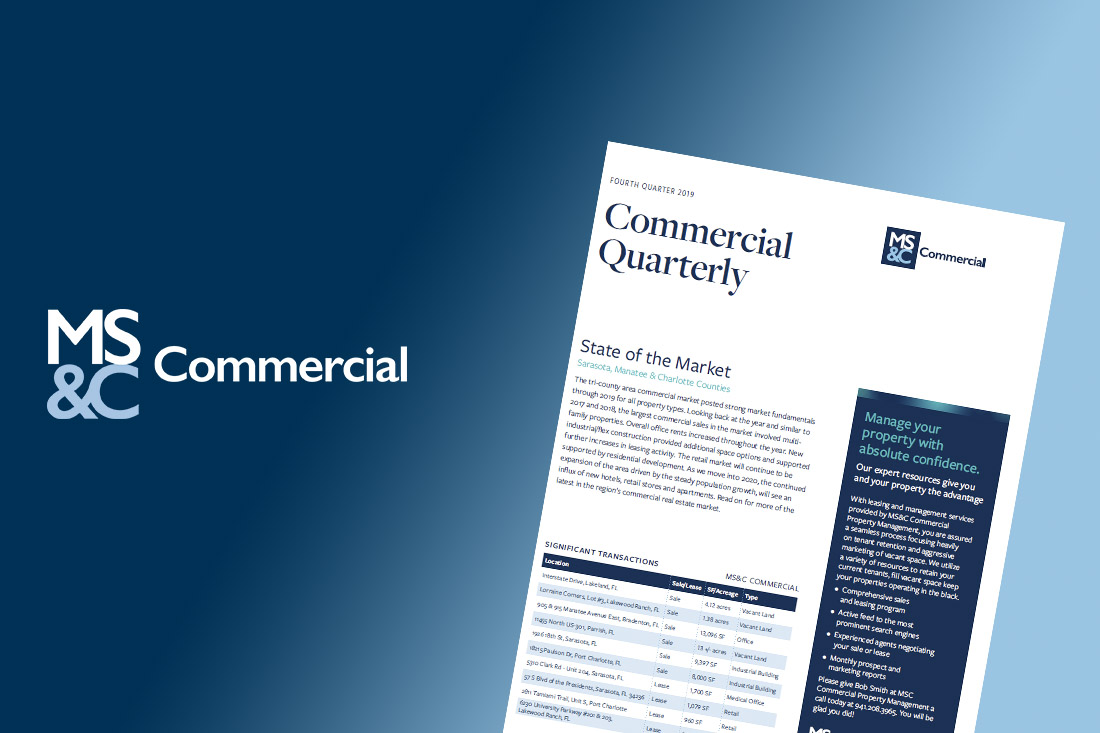 The tri-county area commercial market posted strong market fundamentals through 2019 for all property types. Looking back at the year and similar to 2017 and 2018, the largest commercial sales in the market involved multi-family properties. Overall office rents increased throughout the year. New industrial/flex construction provided additional space options and supported further increases in leasing activity. The retail market will continue to be supported by residential development. As we move into 2020, the continued expansion of the area driven by the steady population growth, will see an influx of new hotels, retail stores and apartments.